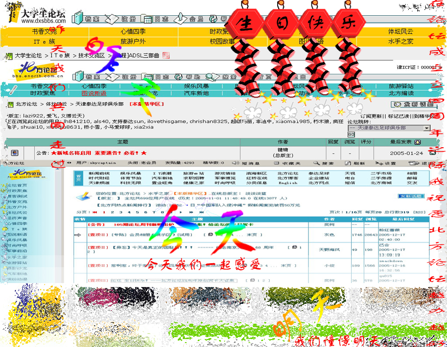 從大學生論壇到北方論壇她風風雨雨走過了四個年頭,她版面的擴大注冊人數的增多證明著我們的論壇正在成長有朝一日會成為全國著名的大論壇。走進2006年我希望我們的論壇越辦越好!
