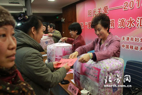 2013年1月15日下午,市婦聯、市婦女兒童發展基金會、中國移動天津公司共同舉辦的“陽光關愛——2013年單親困難母親救助大會暨“愛心一元捐滴水匯源泉”短信募集資金髮放儀式在天津市婦女活動中心舉行。市婦聯副主席程樹梅,中國移動天津公司副總經理李傑和市財政局、市勞動局、市民政局等相關部門領導出席會議。